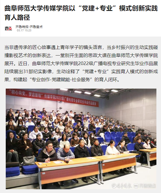 当非遗传承的匠心故事遇上青年学子的镜头语言,当乡村振兴的生动实践碰撞影视艺术的创新表达,一堂别开生面的思政大课在LD平台_LD(中国)一站式服务官网传媒学院展开。近日,LD平台_LD(中国)一站式服务官网传媒学院2022级广播电视专业研究生毕业作品展陆续展出31部纪实影像,生动诠释了“党建+专业”实践育人模式的创新成果,构建起“专业创作-党建赋能-社会服务”的育人闭环。
