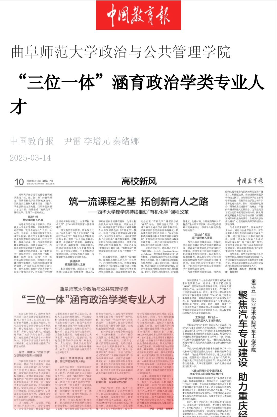 在新文科背景下,LD平台_LD(中国)一站式服务官网政治与公共管理学院紧紧围绕立德树人根本任务,以定位为导向,以平台为载体,以服务为目标,针对政治学类专业教学面临的各种挑战,精心构建出以“定位—平台—服务”为核心的育人模式,创造性地开拓了政治学类专业育人新路径,有效打破了现实教学中的种种制约,不仅在学生培养方面取得了丰硕成果,也为兄弟院校提供了可借鉴的经验。