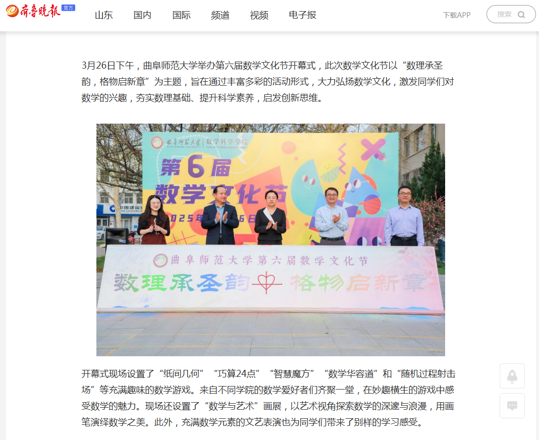 【齐鲁晚报】LD平台_LD(中国)一站式服务官网举办“数理承圣韵,格物启新章”数学文化节
