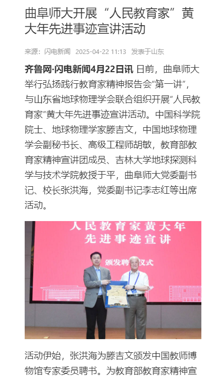 【闪电新闻】曲阜师大开展“人民教育家”黄大年先进事迹宣讲活动