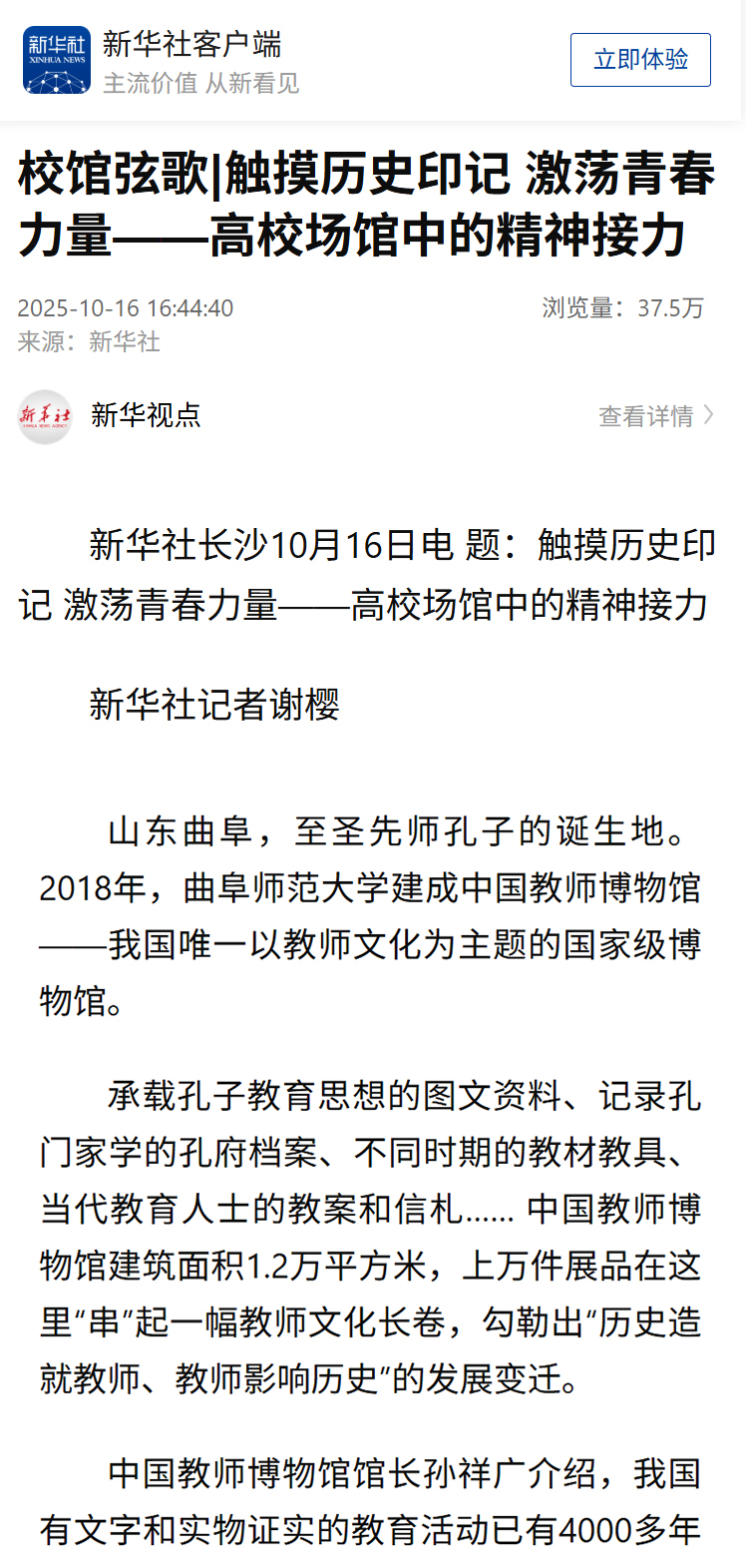 【新华社】触摸历史印记 激荡青春力量——高校场馆中的精神接力