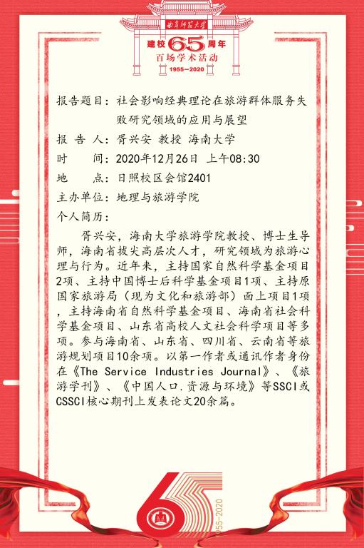 建校65周年校庆百场学术活动-海南大学胥兴安教授
