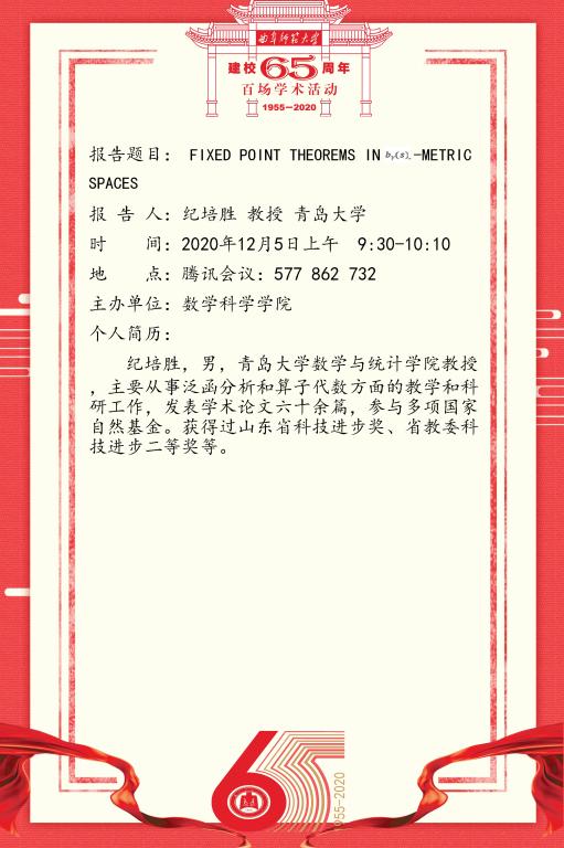 建校65周年校庆百场学术活动--青岛大学纪培胜教授