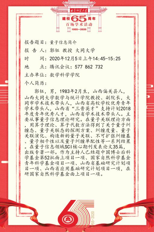建校65周年百场学术活动-大同大学郭钰教授