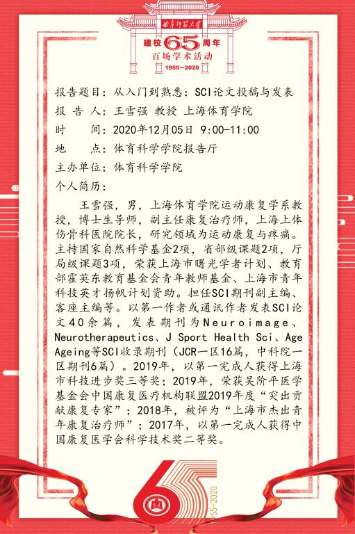 建校65周年百场学术活动-上海体育学院王雪强教授