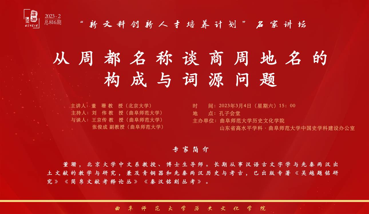 洙泗讲堂预告|董珊:从周都名称谈商周地名的构成与词源问题