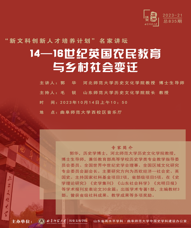 洙泗讲堂预告|郭华:14—16世纪英国农民教育与乡村社会变迁