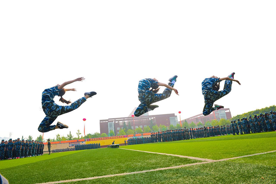 清辉的早晨,嘹亮的军歌,我们迈着坚定的步伐,走在阳光下,展露出新的生机。