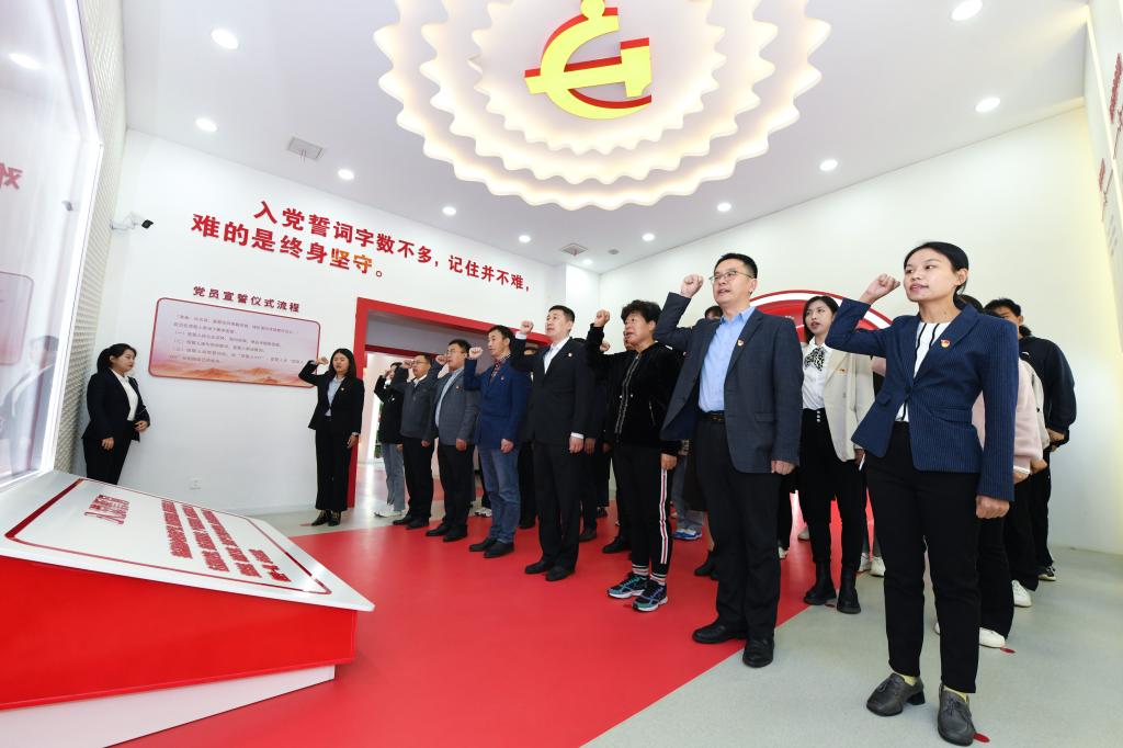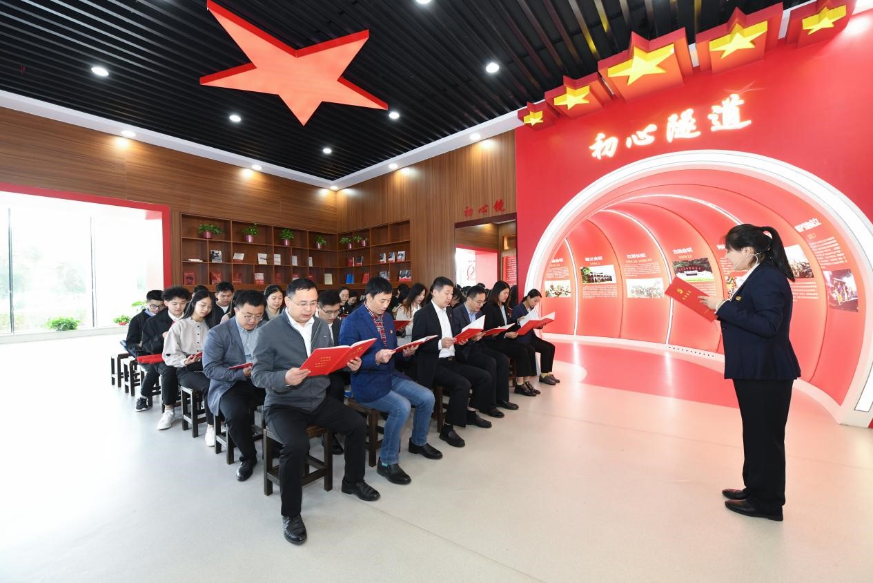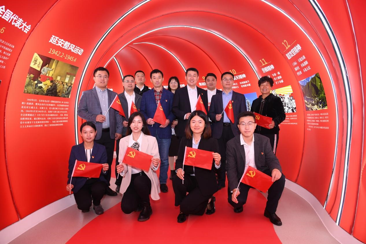 在讲解员的讲解和带领下,学院党委开展了“八个一”活动,推动主题党日活动“走新”更“走心”。“参观一个红色展厅”,在“初心隧道”中,党员们重走了我党一百多年来的沧桑奋斗之路,感受着老一辈共产党人为追求真理而不懈奋斗的激情岁月;“进行一次红色经典诵读”,党员干部齐声朗诵红色经典《走得再远都不能忘记来时的路》,从红色故事中汲取知识、充盈智慧、砥砺前行;“重温一次入党誓词”,本科生党支部书记高思明带领全体党员重温入党誓词,叩问初心使命,进一步坚定了对党忠诚、为党奋斗的信仰信念;“同过一次‘政治生日’”党员们通过过“政治生日”,重温了自己加入党组织的难忘一刻,找到政治归属感,深化对党的认识,激发奋斗、奉献的内在自觉;“聆听一堂微党课”,讲解员深情为大家讲述了跨越百年、历久弥新的一代又一代共产党人的故事和精神——《理想信念是共产党人精神之“钙”》,引导广大党员赓续红色血脉,用精神之火、信念之光激励奋勇前行的磅礴力量。“拍一次支部全家福”进一步激发了学院基层党组织活力,增强了广大党员的光荣感、使命感;“党委书记讲一次党课”,党委书记宋国栋深入浅出、入情入理,用一个个小故事把共产党人苦难辉煌的过去、日新月异的现在、光明宏大的未来贯通起来,引导广大师生党员自觉传承红色基因,担当民族复兴大任;“进行一次政治体验”,在政治体验室,党员们观看专题片《初心之问》,自己把脉诊断,永葆共产党人的政治本色。