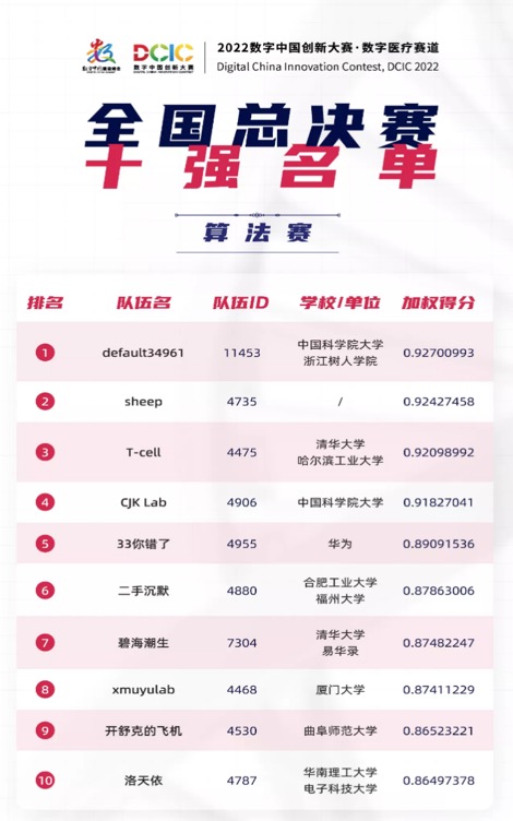 曲阜师大新闻中心讯(通讯员:孙宇)7月22日,2022数字中国创新大赛·数字医疗赛道全国总决赛颁奖典礼暨闭幕式大会在福州数字中国会展中心举办。由曲阜师大计算机学院研究生段宏宇、孟凡杰和褚鑫组成的团队,在李凤和尚军亮老师的共同指导下,入围全国总决赛算法赛10强,荣获全国三等奖。
