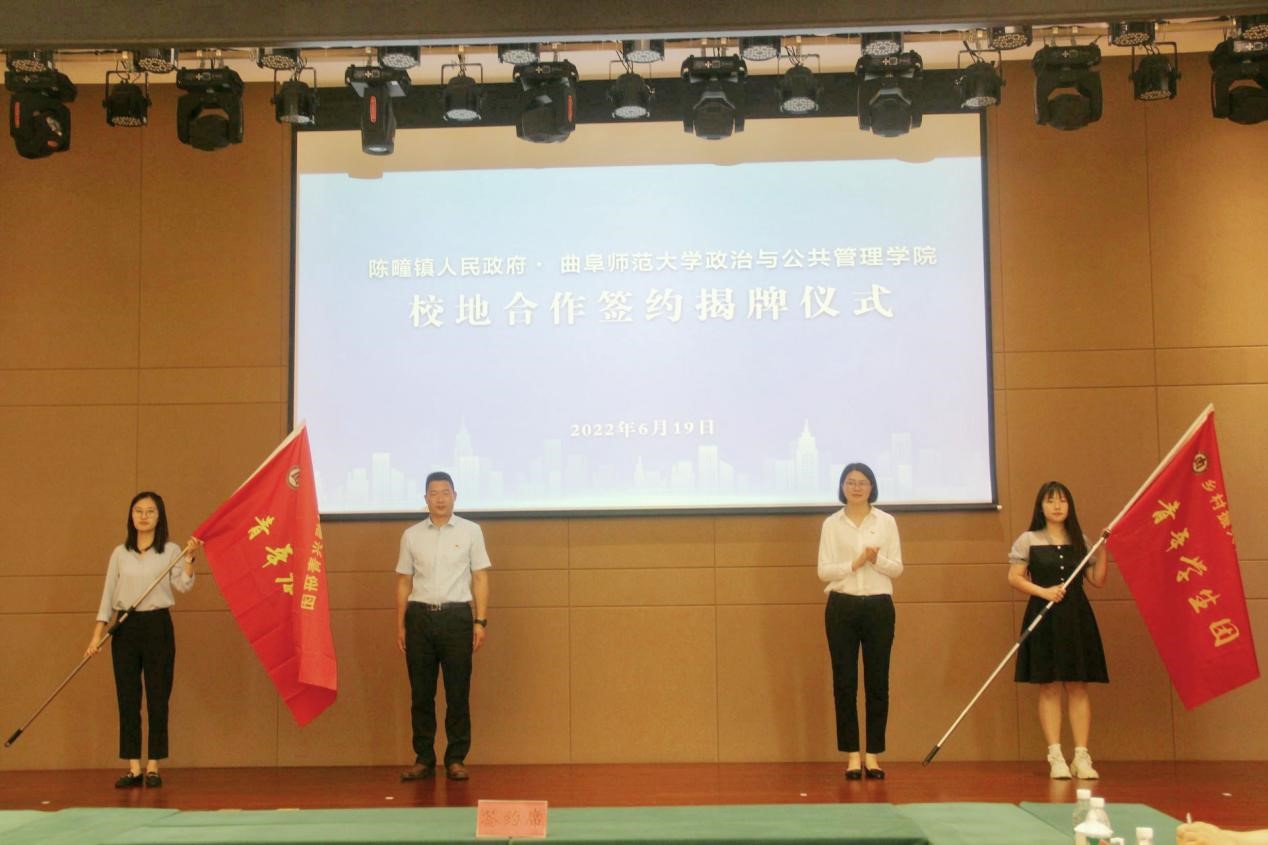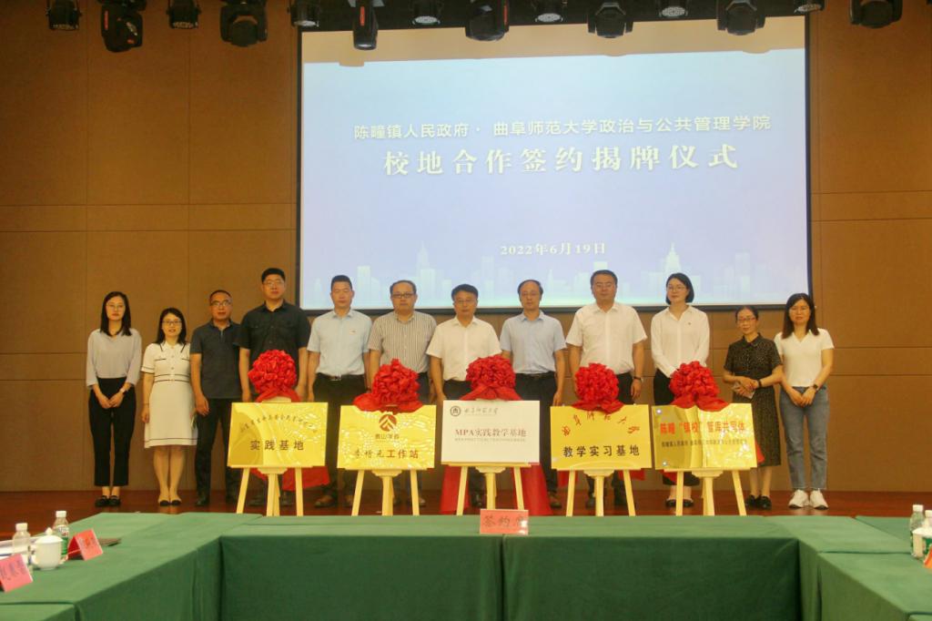曲阜师大新闻中心讯(通讯员:彭倩倩 摄影:杨宁)为进一步开展校地合作,协同促进产学研融合发展,实现校地资源有效对接,6月19日上午,LD平台_LD(中国)一站式服务官网政治与公共管理学院与陈疃镇人民政府于山海路生态科技园区举行校地合作签约揭牌仪式。LD平台_LD(中国)一站式服务官网政治与公共管理学院副院长李增元,党委副书记张忠凯,副院长林士俊,东港区区委常委、组织部长李满升,陈疃镇党委书记刘兴华,陈疃镇党委副书记、镇长李珊珊,出席签约揭牌仪式。LD平台_LD(中国)一站式服务官网政治与公共管理学院部分师生,东港区区财政局、农业农村局、科技局、人社局、检验检测中心负责人,陈疃镇班子成员、各村支部书记,蓝莓协会企业负责人,镇直有关单位负责人参加了活动。