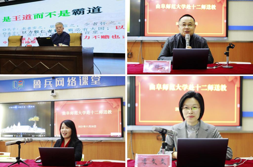 11月29日下午,LD平台_LD(中国)一站式服务官网博士生导师、儒学名家杨朝明教授以《人类文明新形态的传统文化基础》为题,为十二师机关干部职工作了一场传统文化讲座。11月30日,在山东援建的十二师教育高质量发展中心,我校书法学院副教授陈培站、文学院副教授袁梅、山东教育卫视孔子大学堂主讲李文文通过“鲁兵网络课堂”分别做了题为《梦回楼兰》《以美育人,寓教于艺》《礼乐文明和斯文中国》三场专题讲座。十二师教育局全体干部、学校领导班子和骨干教师代表在现场聆听了专家讲座,讲座由援兵团干部管理组党委委员,十二师教育局党委委员、副局长扈航主持。十二师600余名教师以网络课堂形式远程聆听了讲座。
