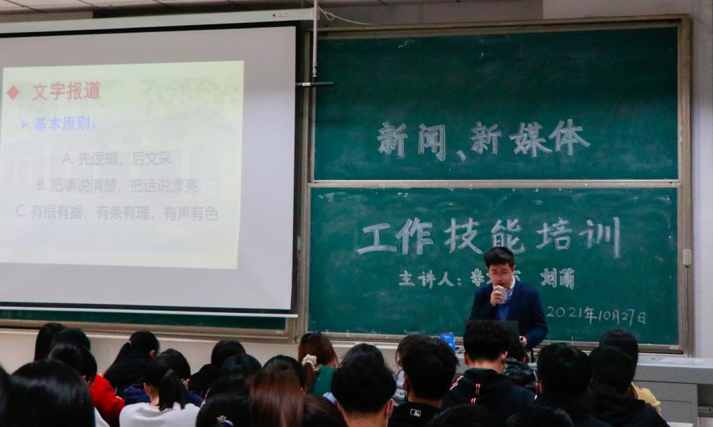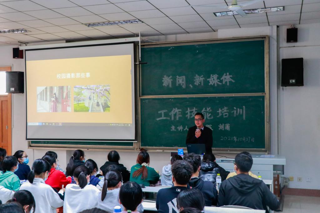 刘萌讲解了校园摄影、新媒体运营和网络素养三方面的内容。他介绍了校园事件类和风景类图片的拍摄方法、注意事项,讲解了常用的修图软件操作方法,向同学们分享了新媒体日常运营经验技巧。培训强调,作为学生干部应提升媒介素养,提高政治理论水平,坚持正确导向,尊重网络版权,共同做好校园新闻宣传工作。