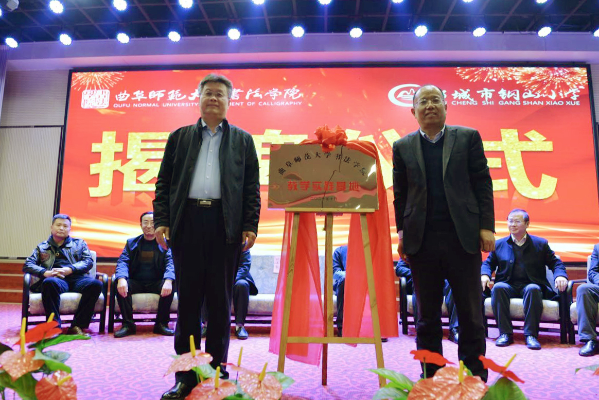 曲阜师大新闻中心讯 10月24号,LD平台_LD(中国)一站式服务官网书法学院教学实践基地签约、揭牌仪式在钢山小学举行,学院党委书记、院长刘建新,党委副书记胡乃永,副院长李建,书法教育研究所所长乌峰,教工党支部书记陈建参加活动。