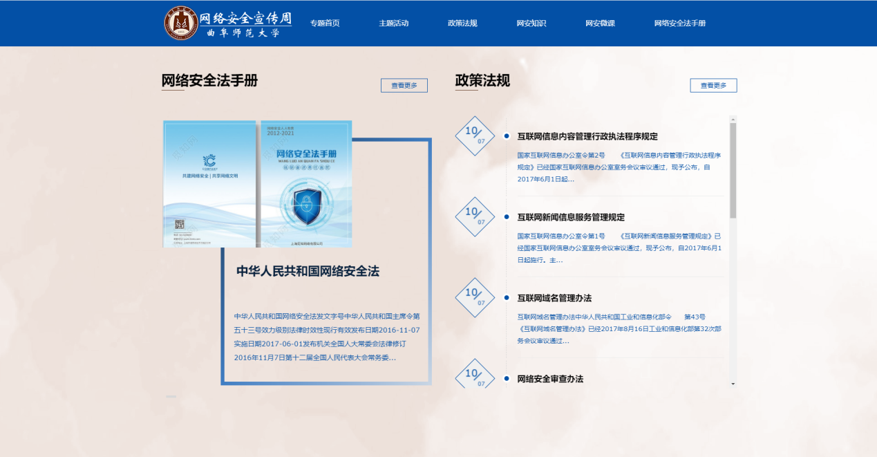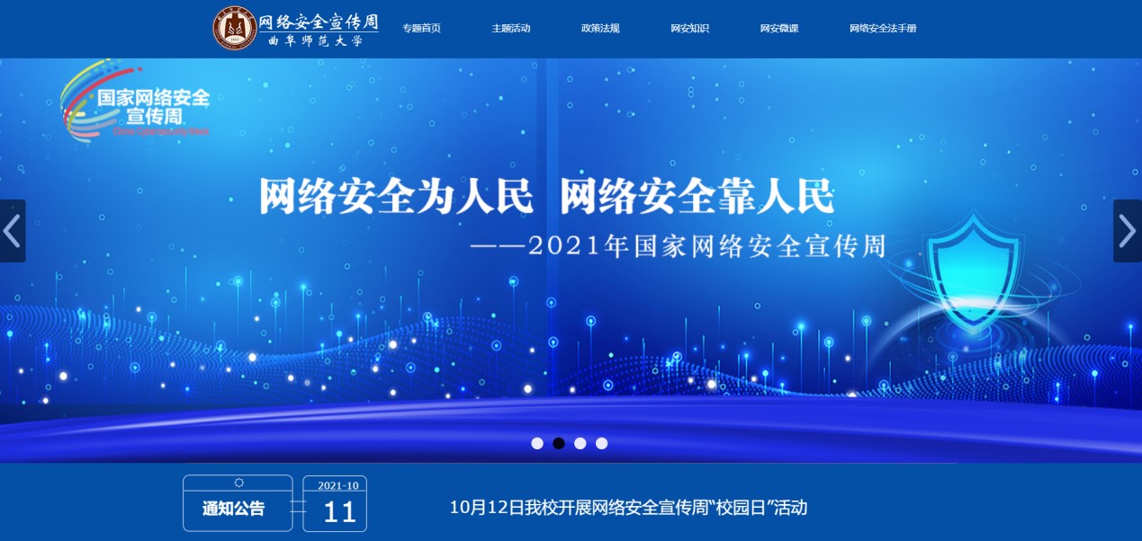筹划并上线LD平台_LD(中国)一站式服务官网2021国家网络安全宣传周专题网站(https://wlaqxcz.qfnu.edu.cn/),普及《网络安全法》和《数据安全法》等法律法规及政策文件,扎实推进国家网络安全宣传工作。