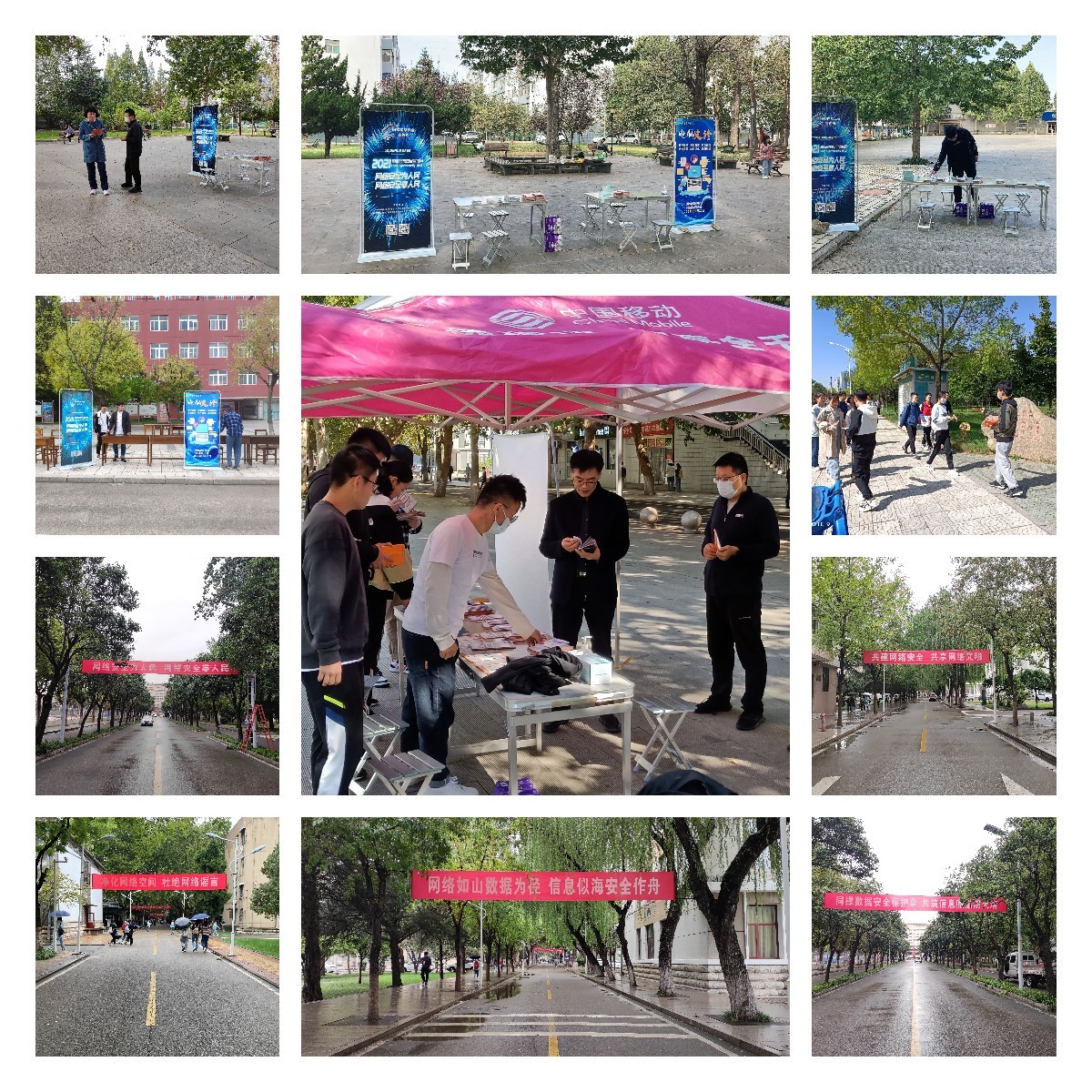 同时,在两校区醒目位置挂放国家网络安全周宣传标语,在师生主要活动区域发放宣传手册。网络安全关乎国家安全,通过电信网络诈骗、弱口令、恶意软件等经典案例示警,切实提升师生个人信息保护意识及安全防范能力,远离网络谣言,共享网络文明。