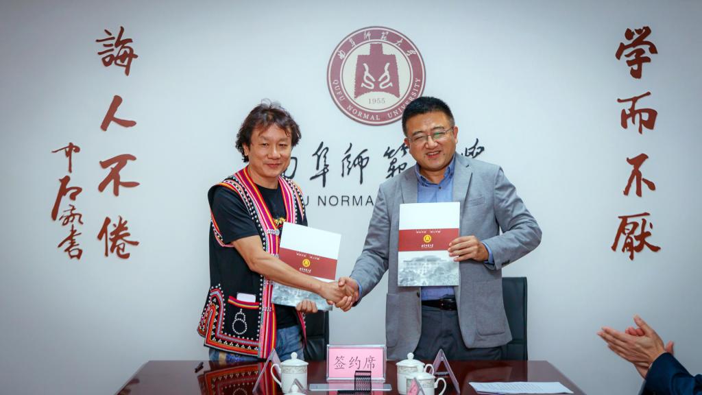 曲阜师大新闻中心讯 为促进优秀民族文化推广传播,推动跨区域校地文化融合发展,10月12日,曲阜师大音乐学院、美术学院与云南澜沧拉祜自治县文化馆举行签约仪式。曲阜师大党委常委、副校长夏云杰,中共澜沧县委常委、县委宣传部部长张艳花,澜沧县文旅局、澜沧县文化馆、曲阜师大社科处、音乐学院、美术学院等部门相关负责人共同出席签约仪式。曲阜师大日照校区办公室主任魏伟主持仪式。