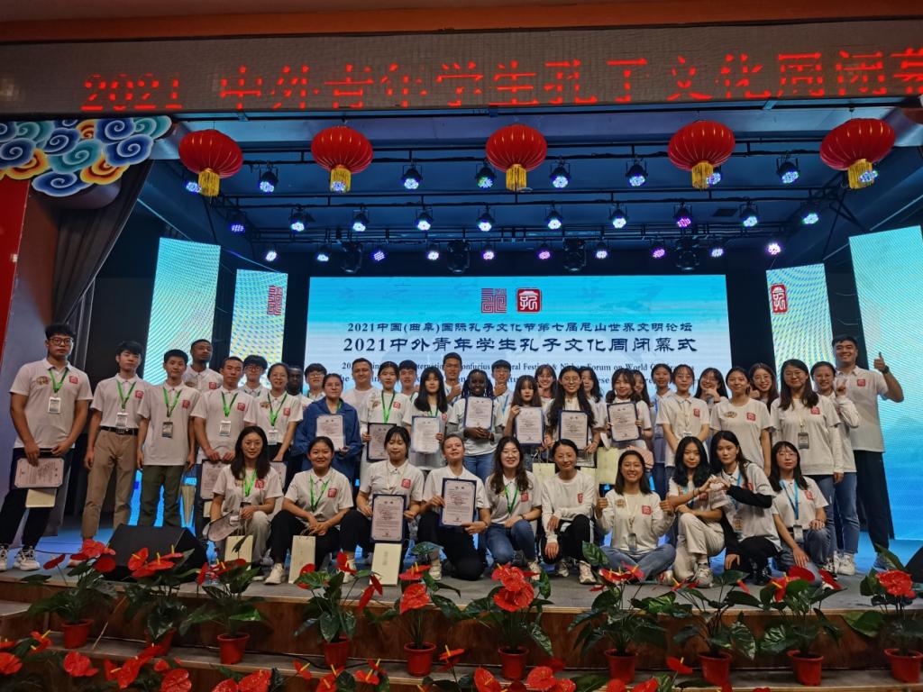 曲阜师大新闻中心讯 由教育部中外人文交流中心、山东省教育厅、济宁市人民政府共同举办的“中外青年学生孔子文化周”,于9月26--29日在济宁曲阜市举行。本次文化周活动作为“2021中国(曲阜)国际孔子文化节第七届尼山世界文明论坛”的组成部分,共有来自全球43个国家的140余名中外大学生参加。曲阜师大选派的41名中外学生参加了此次活动,展现了曲园学子的青春力量,促进了中外人文交流。