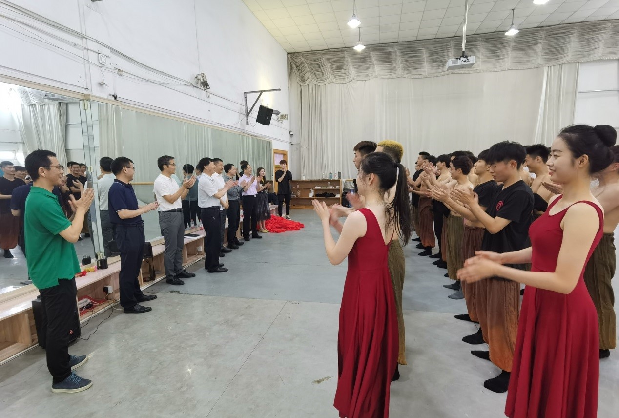 洽谈会后,深入我院舞蹈教室查看了学生上民族舞情况,并欣赏了以中国共产党建党百年以来与五千年民族精神一脉相承、奔流不息为立意起点,将黄河的文化表征与中国共产党人的百年峥嵘、百年奋斗进行意象融合与回望,以“我”的个体视角切入历史表意主体,以“河”象“人”,以“境”塑“魂”的原创舞蹈《我的河》。
