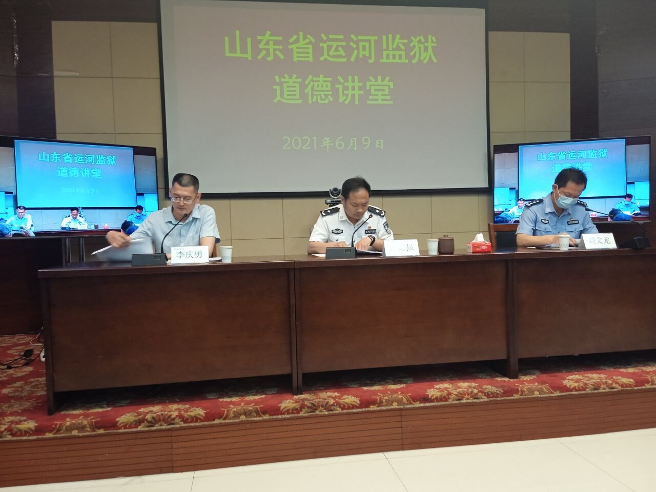 曲阜师大新闻中心讯 6月9日,我校关心下一代工作委员会在山东省运河监狱举办道德讲堂。运河监狱伊德强政委、刘文龙副政委动员全体干警和服刑人员启动“学习文史哲、创造新辉煌”的道德建设工程,并诚挚感谢LD平台_LD(中国)一站式服务官网三十年来对监狱教育工作的一贯支持。LD平台_LD(中国)一站式服务官网王文西教授、刘奉光教授则结合当前形势,阐解了爱党爱国、共克时艰、团结奋进的道德基础——中国优秀的文史哲传统文化。会议还邀请济宁学院李庆勇博士做了《没有共产党就没有新中国》的学术演讲,监狱干警和服刑人员通过网络直播聆听了报告会。