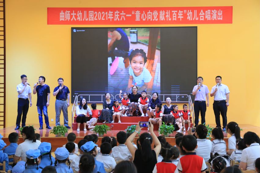 曲阜师大新闻中心讯(记者:孙琪)为庆祝建党100周年,激发孩子们的爱国精神,展现积极向上的精神风貌。6月1日上午,曲阜师大幼儿园举行了“童心向党 献礼百年”合唱演出活动,孩子们用优美的歌声表达了对党和国家的热爱之情,用别样的方式庆祝“六一”国际儿童节。学校副校长李兆祥,学校办公室、校工会、后勤管理处等相关负责人和师生们一起观看了演出。
