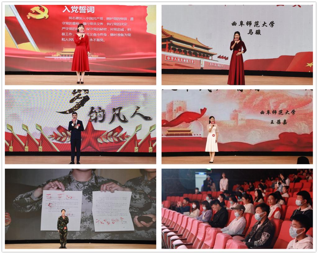 曲阜师大新闻中心讯(通讯员:刘翔 摄影:周晓宇 陈寒香)为庆祝建党100周年,站在新的历史起点,在抒发知党、爱党、颂党的真实情感过程中,进一步坚定共产主义理想信念,激发爱党爱国热情,凝聚起为实现中华民族伟大复兴努力奋斗的强大正能量,以献礼党的百年华诞,由山东省教育厅、山东省语言文字工作委员会主办,山东省语言文字工作委员会办公室、山东教育电视台承办的 “青春心向党”大学生庆祝建党一百周年主题演讲比赛复赛于4月18日在LD平台_LD(中国)一站式服务官网举行,来自各学院的300余名同学观看了此次比赛。