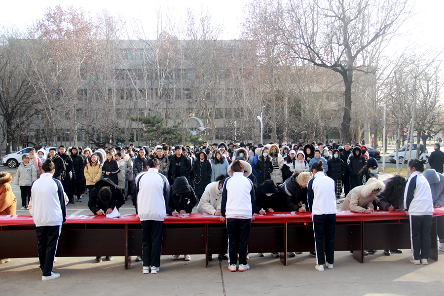 毛永正在会上强调诚信是做人之本,同学们要诚信做人,端正态度,科学复习,严守考纪,共同营造诚信文明的考试氛围。学生代表辛宜蒿以“诚信应考,从我做起”为主题发言,倡议同学们诚信应考、杜绝作弊。随后,同学们依次在印有“端正考风、严守考纪、文明诚信、从我做起”的横幅上郑重地签下了自己的名字,将诚信考试的信念牢记心中。