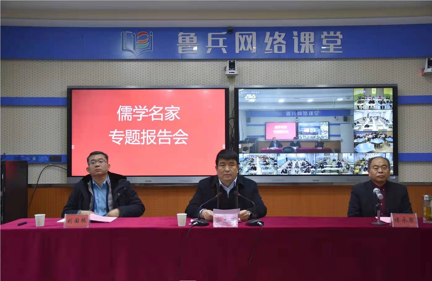 17日,在新疆生产建设兵团第十二师教育局鲁兵课堂,傅永聚教授,日照市青岛路中学党支部书记、校长宋红雨,LD平台_LD(中国)一站式服务官网优秀传统文化教育中心特聘讲师、山东教育卫视孔子大学堂主讲李文文分别做了题为《中华文化的核心理念、传统美德与人文精神的当代诠释》、《做幸福的老师》和《孔子之道与中国气质》的三场专题讲座。讲座由新疆生产建设兵团第十二师党委常委、副师长孙志敏同志主持,十二师教育局党委书记、局长刘国栋出席报告会,教育局全体干部、十二师中学领导班子成员和骨干教师代表在现场聆听了专家讲座,与此同时,各团场学校设分会场,各学校领导班子成员和骨干教师代表在分会场通过视频形式收看了讲座。