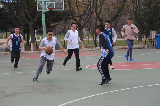 赛场上,老师与同学们热情高涨,挥洒汗水,释放活力,比赛氛围不断升温。篮球赛上,张学波、郭付友、李宝富、蔡利平、贺山峰老师组成的教工队与学院男篮同学进行比赛。教工队精彩的配合和快攻反击让比赛扣人心弦,令观众热血沸腾。男篮同学凭借积极地拼抢,用巧妙的短传配合,多次试图突破对方防守,争取为自己的队伍赢得一分。