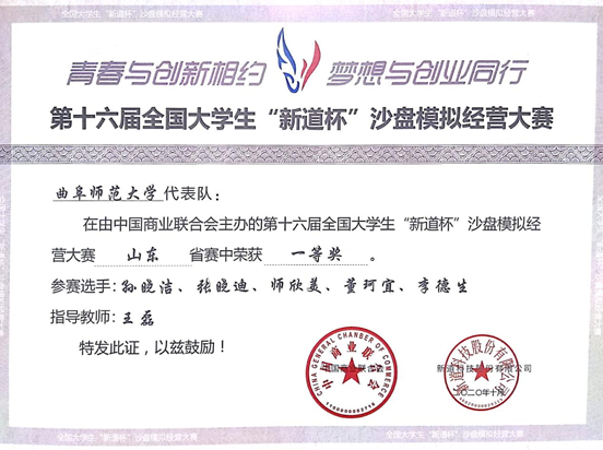 曲阜师大新闻中心讯(通讯员:李静琪) 日前,第十二届山东省大学生科技节创新创业模拟企业经营大赛山东省总决赛成绩揭晓,曲阜师大管理学院2支参赛队伍分别荣获省级一等奖、省级三等奖。