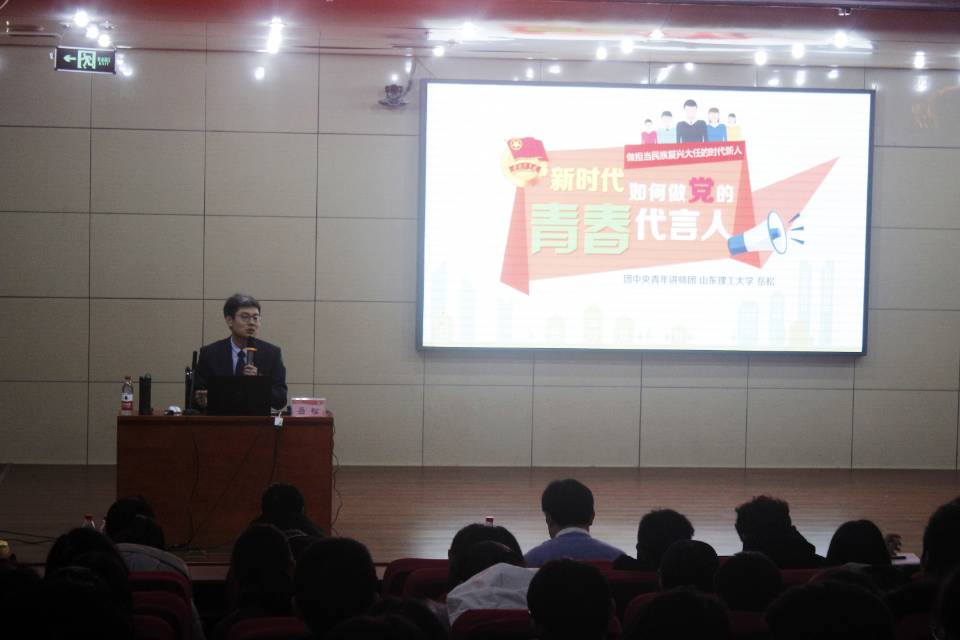 12月14日,LD平台_LD(中国)一站式服务官网2019—2020学年“青马工程”培训班暨第二十九期团校培训在图书馆报告厅举行。团中央青年讲师团成员、山东理工大学马克思主义学院思政课教师,岳松受邀做“新时代如何做党的青春代言人”主题讲座。活动由校团委副书记刘蓉主持。