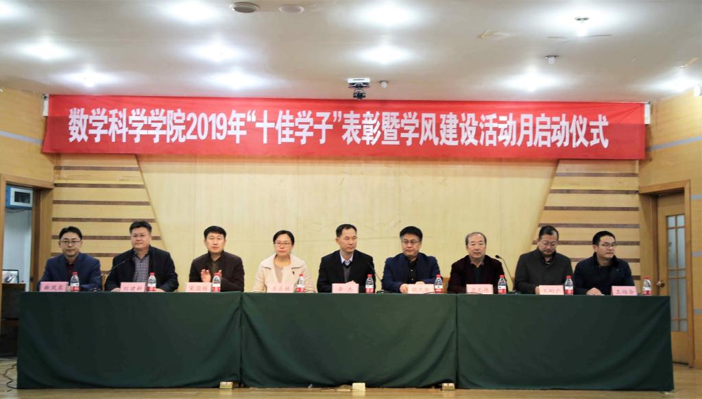 11月27日下午,数学科学学院2019年“十佳学子”表彰暨学风建设活动月启动仪式在孔子会堂举行。副校长辛杰出席启动仪式,学生工作处、教务处、校团委、数学科学学院等单位负责人及数学科学学院19级全体学生参加了活动。启动仪式由数学科学学院党委书记刘建新主持。