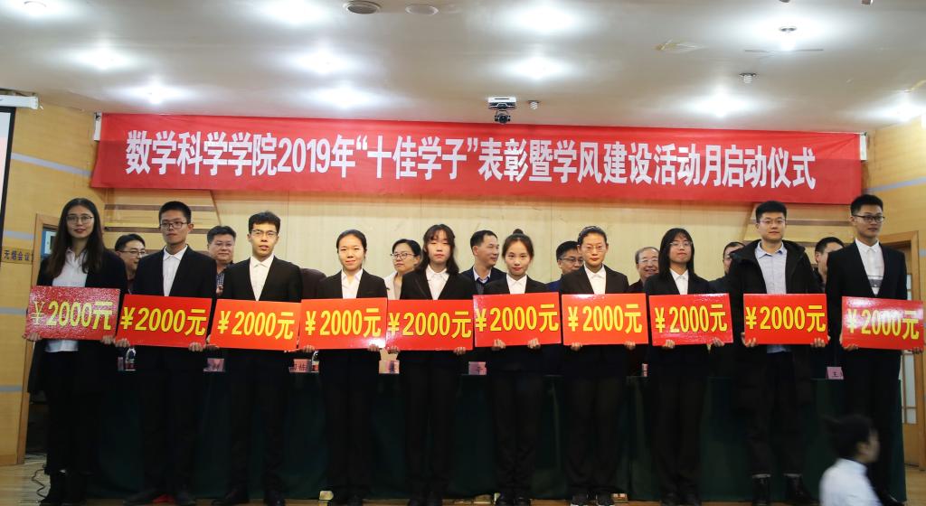数学科学学院党委副书记曲凤东宣读了2019年“十佳学子”名单,荣获“十佳学子”称号的同学接受了表彰。“十佳学子”代表刘文静同学发言。