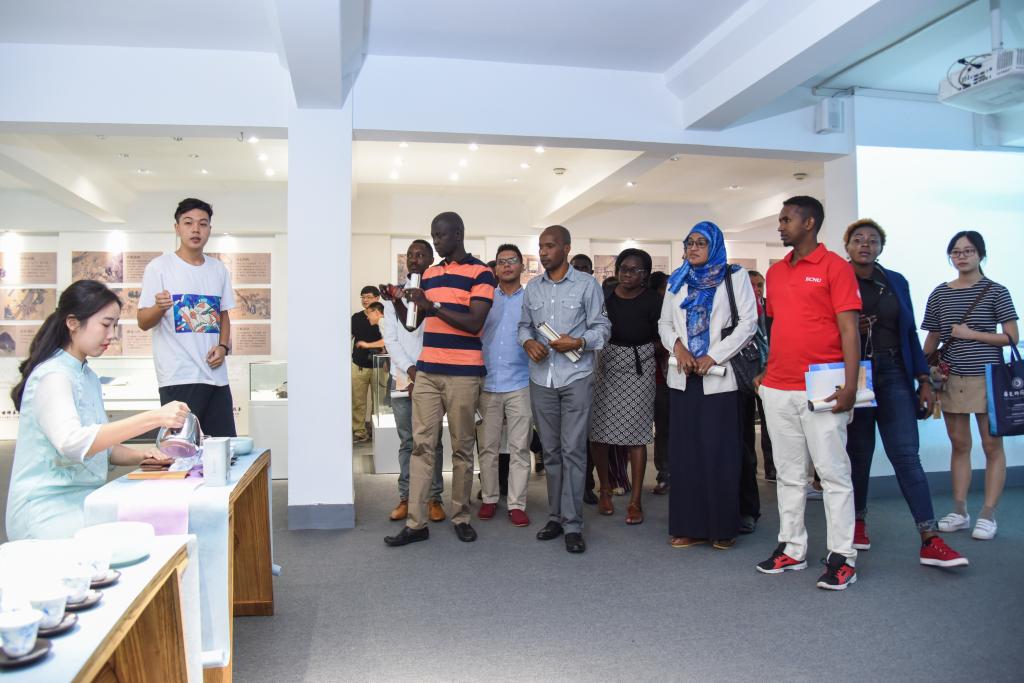 参观时,教师博物馆常务副馆长孙祥广、副馆长刘永向代表们赠送了由博物馆特别定制的《孔子行教像》,我校学子为各国代表献上了精彩的射艺、茶艺表演,展现了圣地学府青年学子的儒风雅韵,