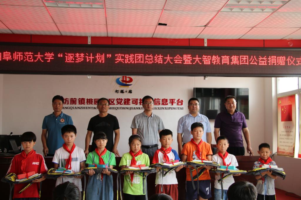 “逐梦计划”社会实践团密切了我校、大智教育集团和坊前镇的友好合作关系,探索了校企、校地合作的新模式,取得了丰硕成果,获得了广泛好评。“逐梦计划”社会实践团是由我校学生工作处与大智教育集团通力合作、精心打造的大学生暑期社会实践项目。该项目在校内遴选优秀学生到大智教育集团接受专业教学技能培训,再到贫困农村开展义务支教活动,囊括主题社会实践、专业技能培训、理想信念塑造、爱心志愿帮扶等内容,是推动高校实践育人、文化育人,落实立德树人根本任务的创新尝试。