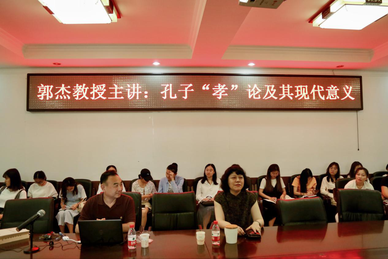 5月18日下午,深圳大学二级教授、广东省人大常委会委员、广东省人大法制委副主任委员、教育部中文类专业教学指导委员会委员、中国诗经学会副会长、中国屈原学会副会长郭杰做客我校,为广大师生作了题为《孔孟“孝”论及其现代意义》的学术报告。报告由文学院院长夏静教授主持,文学院部分师生聆听了此次学术讲座。