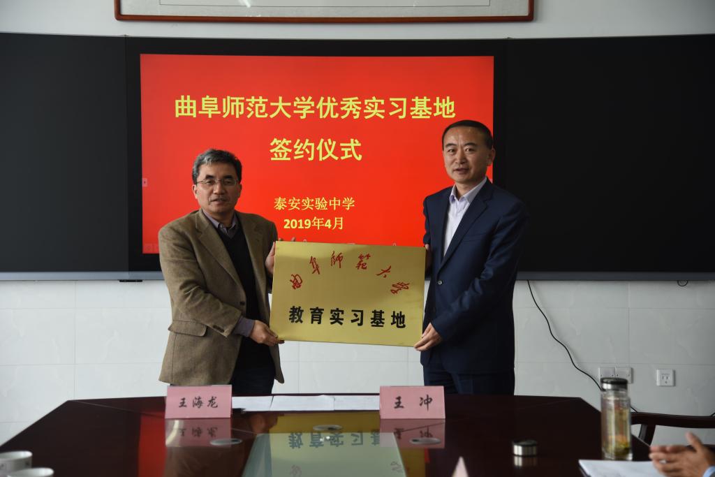 仪式上,王海龙分别与泰安一中校长常希贞、泰安实验中学校长王冲、泰安市岱岳区开元中学校长王玉斌代表双方学校签署合作协议,并为教育实习基地揭牌。