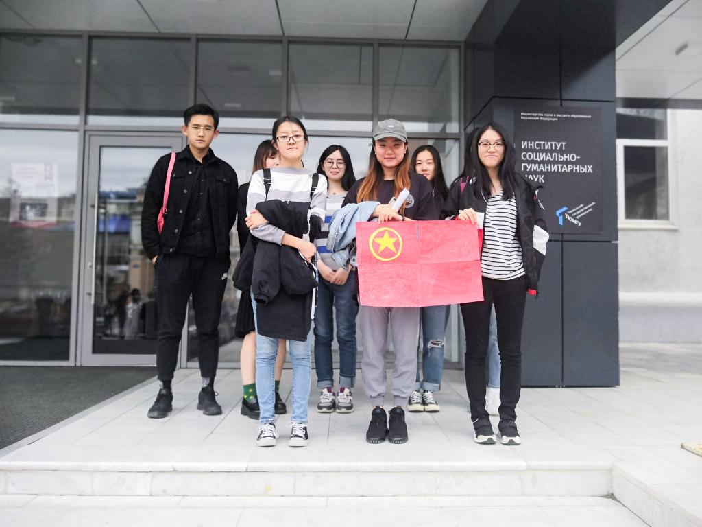 5月4日,为弘扬五四精神,我校外国语学院在俄罗斯秋明国立大学留学的10名俄语专业留学生举行了手绘共青团团旗活动。