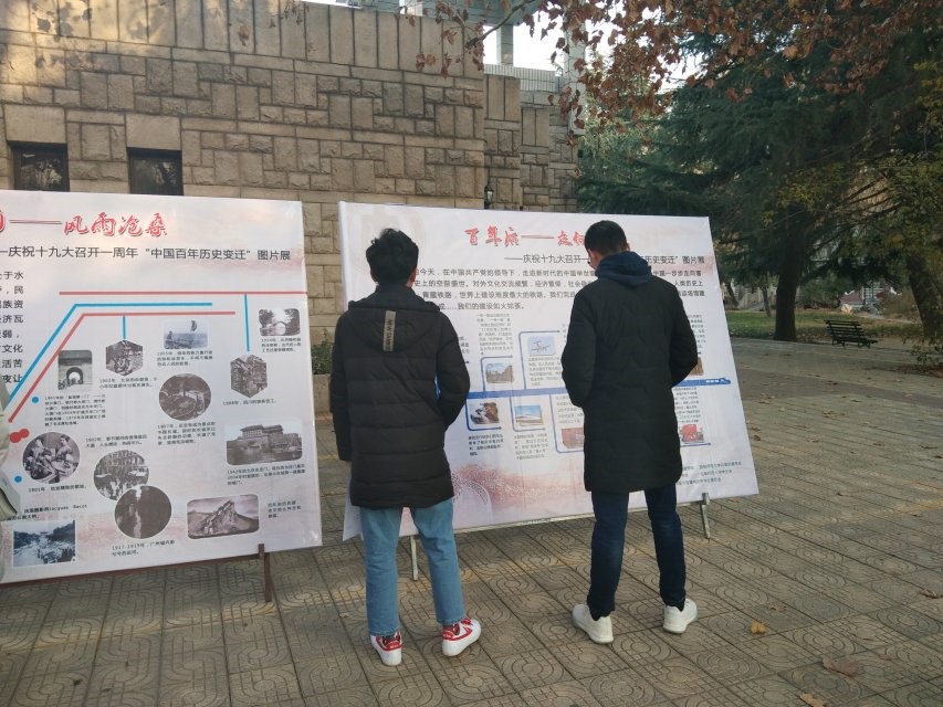 2018年12月,在改革开放四十周年暨十九大召开一周年之际,为了使学生了解祖国百年沧桑变化,增强学生家国荣誉感和自豪感,我校图书馆联合党委宣传部、校团委、校学生会,推出中国百年历史变迁图片展。