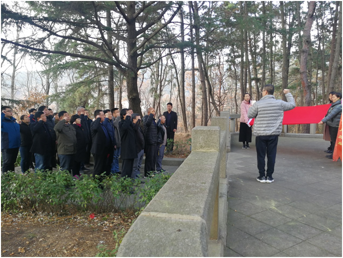 在庄严肃穆的革命烈士纪念碑前,学员们向革命烈士敬献花篮,深切缅怀革命先烈的丰功伟绩,并面对鲜红的党旗庄严宣誓,重温入党誓词。