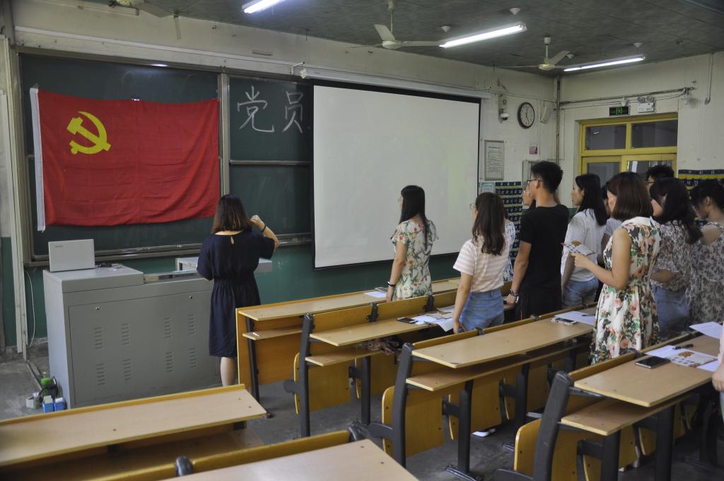 全体毕业生党员在活动中重温了入党誓词。面向鲜红的党旗,全体党员庄严宣誓“为共产主义事业奋斗终身”。大家一致表示将不忘入党初心,牢记党员身份,谨记习近平总书记对青年人提出的希望,“立鸿鹄志,做奋斗者”,在以后的工作岗位上不断努力奋斗,为社会发展和祖国繁荣做出自己的努力。