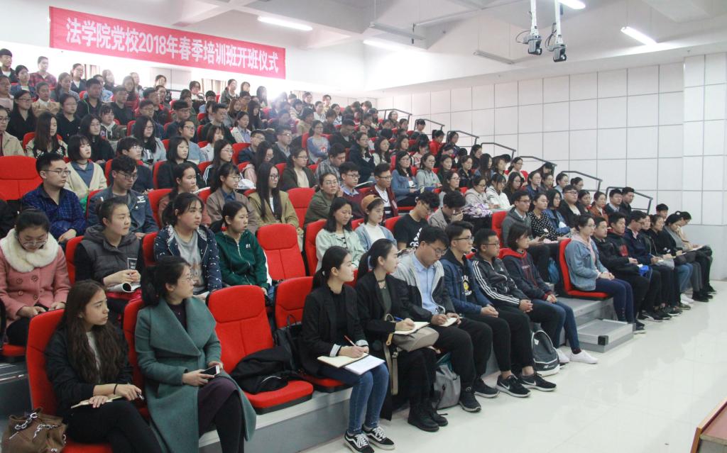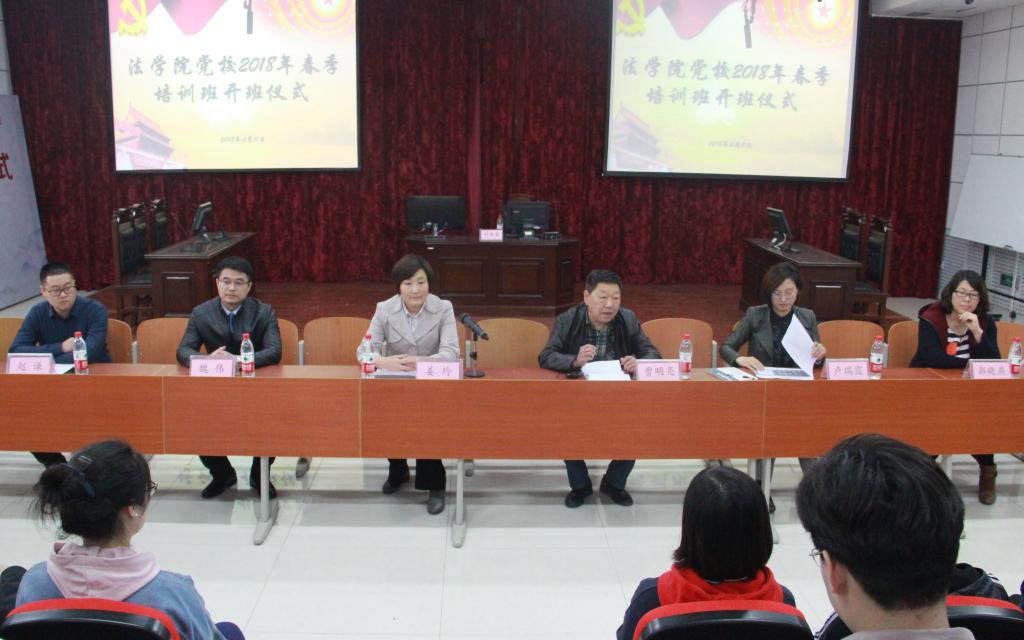 4月11日下午,法学院党校2018年春季培训班开班仪式举行。我校党校常务副校长、组织部副部长姜玲、法学院党委书记曹明亮、日照校区管理办公室副主任魏伟出席仪式。法学院部分教师代表,以及学生党员、入党积极分子参加开班仪式。