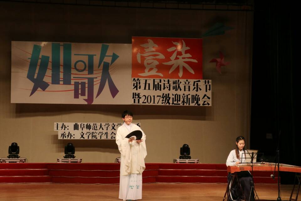 11月26日晚,文学院举办第五届诗歌音乐节暨“如歌壹柒”迎新晚会。