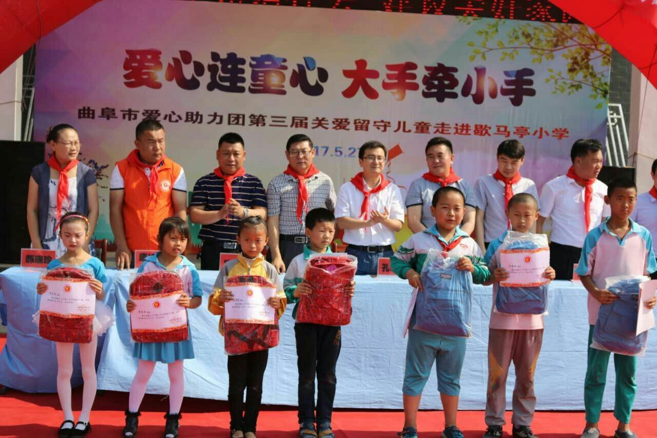 揭牌仪式后,数学科学学院和爱心助力团为歇马亭小学贫困学生捐赠了一万余元的爱心书包、课外读物及其他文体用品,爱心助力关爱留守儿童。曲阜妇幼保健院为留守儿童进行了健康查体。