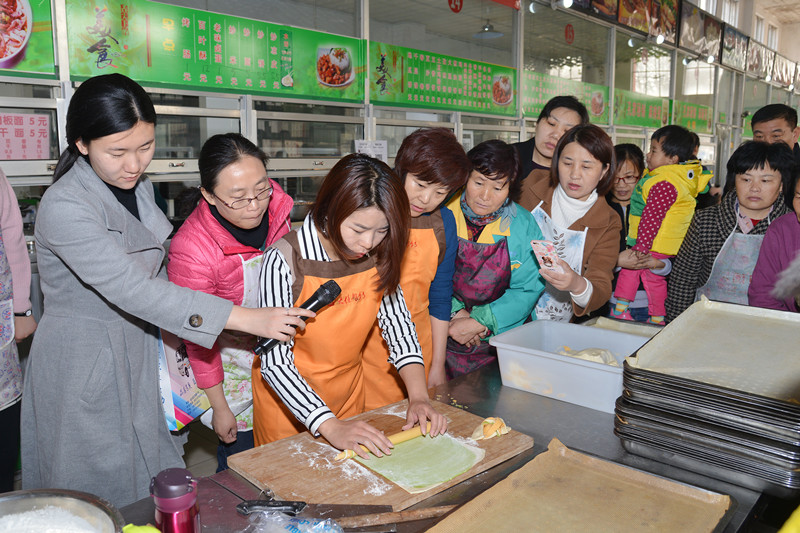 风和日丽,春色满园。3月18日上午,我校妇委会特邀济宁四位知名面点师于学生第三食堂为曲阜校区100余名教工传授面点制作的技术。工会主席王万民出席了本次活动,妇委会主任张月萍致开幕辞。