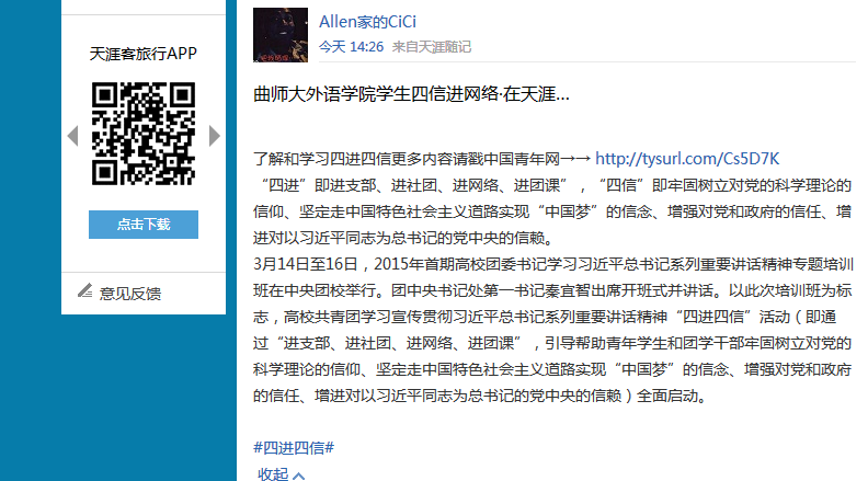 暑期,LD平台_LD(中国)一站式服务官网外国语学院“四进四信”宣讲小分队一行人在青年网民居多的贴吧,天涯论坛,微博等网络公众平台,根据青年网友对习近平十八大讲话以来关于“四进四信”活动内容的认知情况,充分利用网络资源和舆论影响力通过发帖、动态和调动大家参与讨论等多路径方式展开了近一个月的宣传教育工作,旨在提高中国青年网民的思想理论水平,并借此践行中央的“四进四信”精神,营造积极向上的网络舆论氛围。