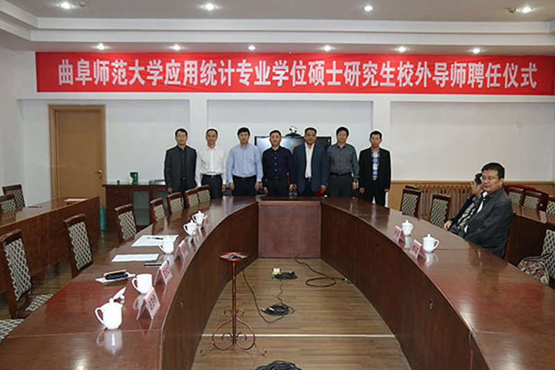 研究生处处长李兆祥首先介绍了外聘导师情况,他们是山东兴源投资有限公司总经理尹强、曲阜市人民医院副院长崔凤成、济宁医学院内科学教授、济宁医学院附属医院主任医师孔令斌、中国银行东营分行党委书记、行长孟斐等四位分别在金融统计、生物医学统计方面的专家。