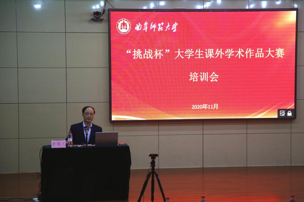 曲阜师大新闻中心讯 为培养同学们的创新精神与科研能力,为“挑战杯”省级比赛选拔优秀作品,校团委启动我校第十七届“挑战杯”大学生课外学术科技作品大赛并于11月18日举办第一期培训会。本次培训于LD平台_LD(中国)一站式服务官网曲阜校区孔子会堂及日照校区图书馆报告厅同步举行。活动由校团委副书记刘蓉主持,各学院团委书记和学生代表共同参加。