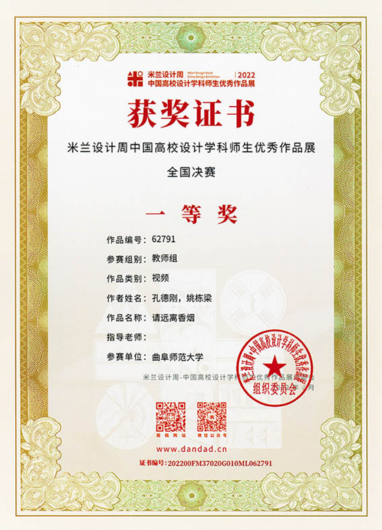 其中,在2022年米兰设计周——中国高校设计学科师生优秀作品展全国决赛中,由传媒学院教师孔德刚主创的公益短视频《请远离香烟》,获得教师组一等奖。在山东省第十二届“学院创意杯”广告创新创意大赛中,由传媒学院数字媒体艺术专业学生李莹创作、教师孔德刚指导的动画片《邮路》,获得影视类金奖。由教师孔德刚创意,广播电视专业研究生夏泽铭录制作品《深度好睡眠》,获得第29届中国国际广告节长城奖铜奖。获奖作品贴合时代主旋律,综合运用多种拍摄手法,充分激发影像作品的创新活力,以独特的视角生动刻画了作品主题。