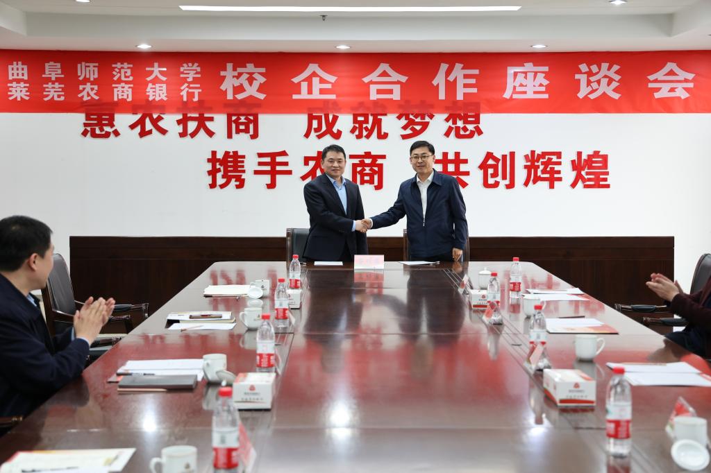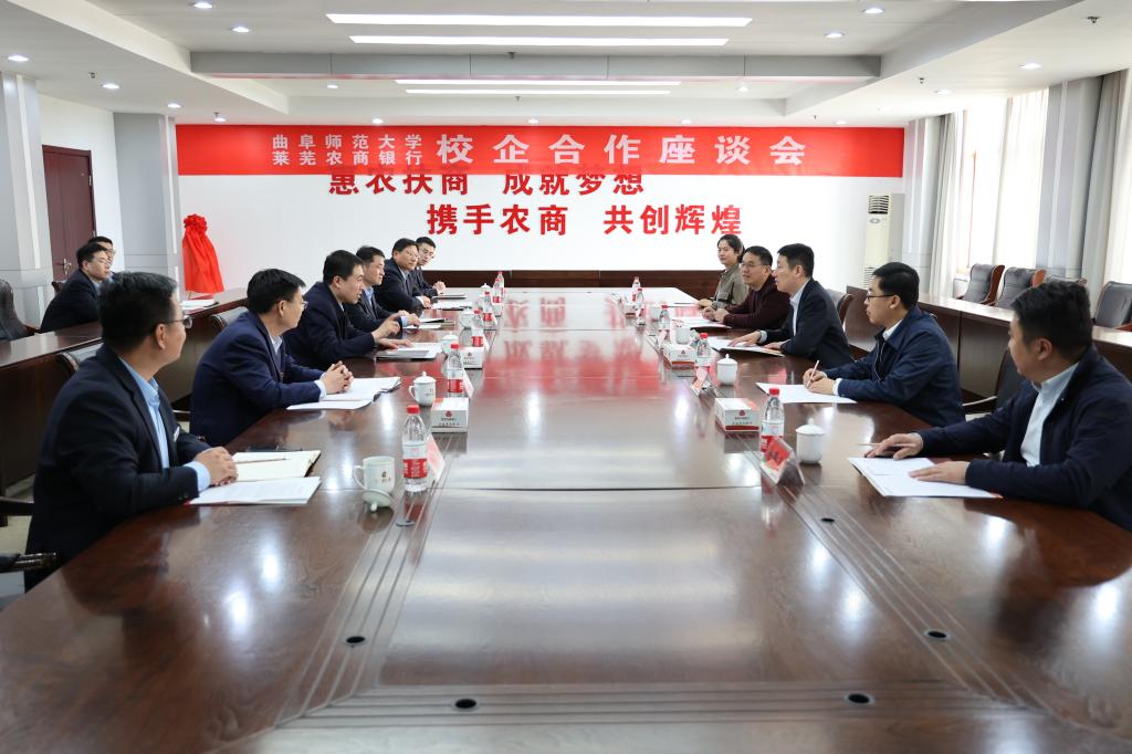 曲阜师大数学科学学院讯 4月26日,数学科学学院党委书记宋国栋、党委副书记曲凤东、副院长王培合一行赴莱芜农商银行开展“访企拓岗促就业”走访调研,并举行共建社会实践基地授牌仪式。莱芜农商银行行长张瞳,党委副书记、监事长王仁福等热情接待宋国栋一行。